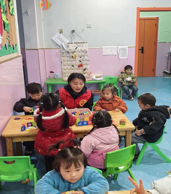 随后,志愿者们结合孩子们的年龄特点,在与幼儿园教师充分沟通的基础上,发挥自身专业特长,精心设计了手工、绘本阅读、趣味游戏等多样化环节。在手工课上,志愿者们耐心指导孩子们折千纸鹤、制作纸花,孩子们认真投入的模样格外动人;绘本阅读时间,志愿者们声情并茂地讲述故事,孩子们听得津津有味,踊跃提问,互动积极热烈;趣味游戏环节,“老鹰捉小鸡”“丢手绢”等经典游戏轮番上演,幼儿园里洋溢着欢乐的气氛。
