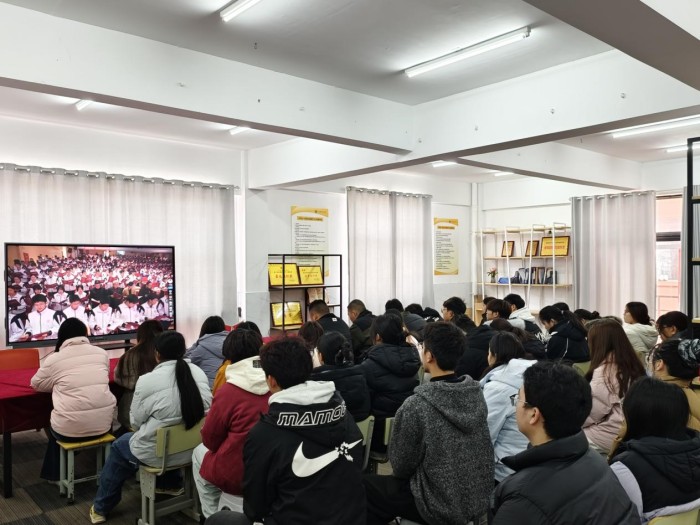 12月4日,我校团委在大学生“一站式”社区活动中心举办“宪法晨读”主题教育活动,师生代表通过教育部全国青少年普法网同步收看北京主会场线上直播,共同参与全国教育系统“宪法晨读”活动。伴随着庄严肃穆的升旗仪式,五星红旗冉冉升起,爱国情怀与法治敬畏之心在师生心中油然而生。直播过程中,大家认真观看第十届全国学生“学宪法讲宪法”比赛全国总决赛优秀作品展演,聆听教育部负责同志的殷切寄语,从同龄学子的践行担当中学思践悟;在合唱《宪法伴我们成长》的激昂旋律中,将法治信仰深深融入青春血脉,让宪法精神在朗朗书声与嘹亮歌声中落地生根。