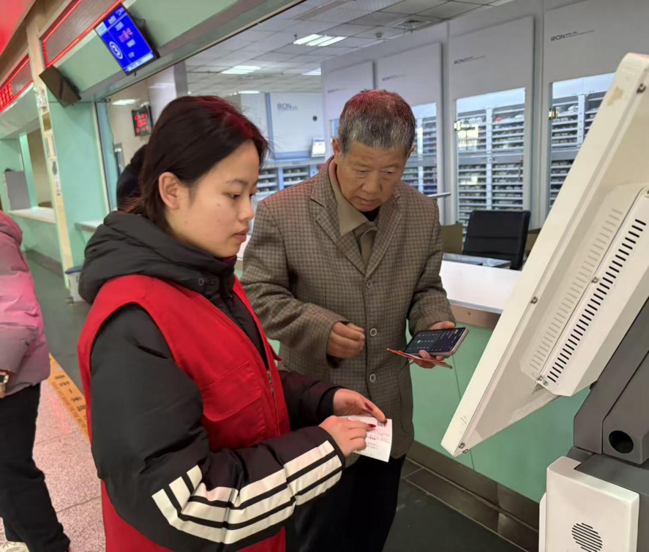 在全椒县人民医院,实践队员身穿志愿马甲,活跃在门诊大厅、自助服务区和分诊台前,为前来就诊的群众提供暖心导诊服务。面对患者焦急的目光,队员们主动迎上前去,耐心询问需求、细致解答疑问,手把手协助老年患者操作自助挂号机、缴费机和报告打印机,细心搀扶行动不便的老人前往诊室,成为医院里流动的温暖风景线。就诊高峰期间,队员们沉着引导人流、维持秩序,用一声问候、一次搀扶、一句指引,化解患者的焦虑,传递医患之间的温情,赢得医护人员和就诊群众的广泛赞誉。